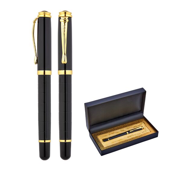 656-KT Siyah-Gold Metal Tükenmez Kalem Seti