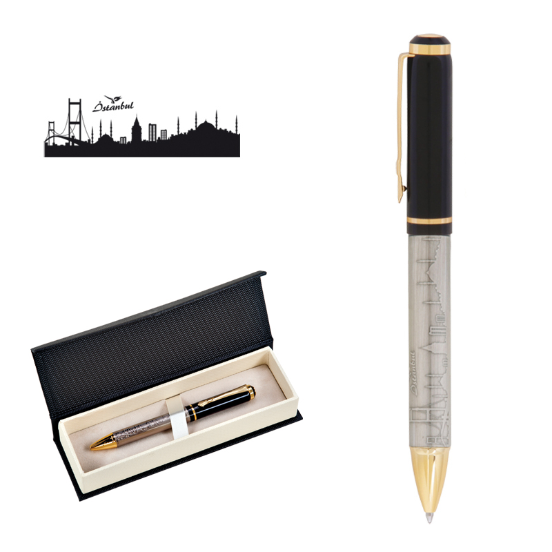 AK-661-KT İstanbul Kabartma Figürlü Metal Tükenmez Kalem Seti