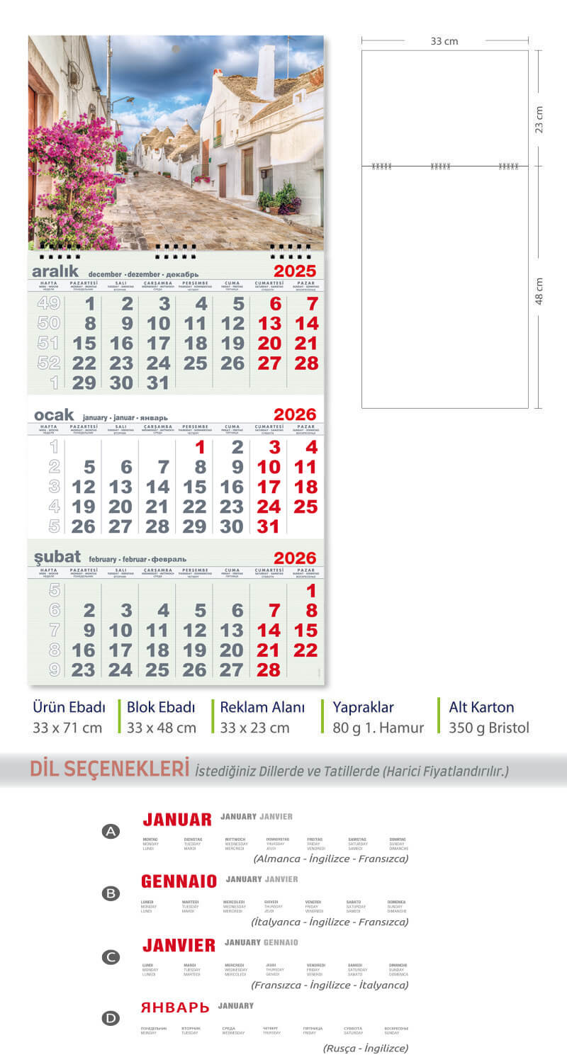 Beş Aylık Gemici Takvim (Üç Parça Spiralli)