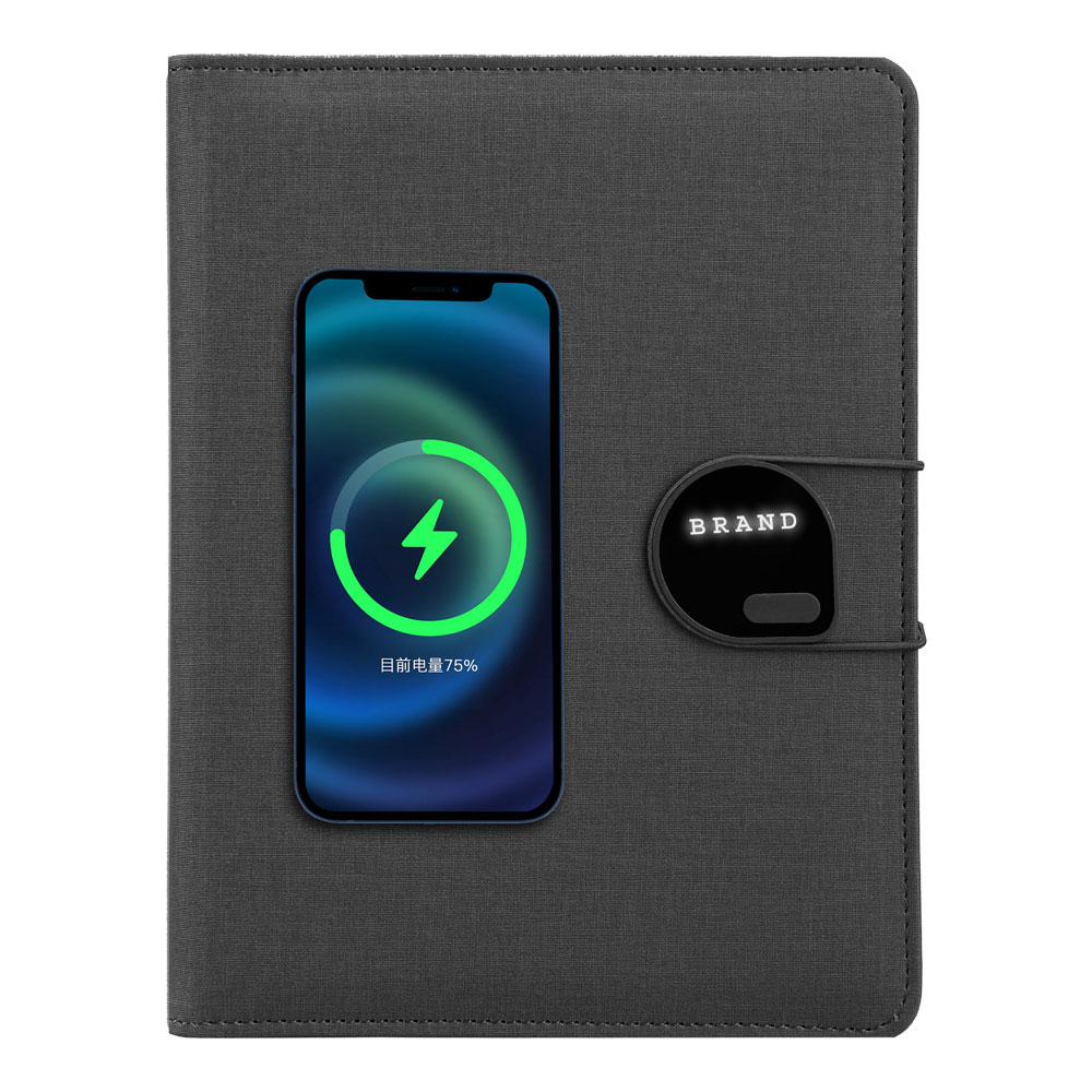 Powerbank organizer 5000 mAh MAGSAFE özellikli Işıklı logo baskısı A5 not defteri Telefon tutucu Kalem takma yeri Kartlık