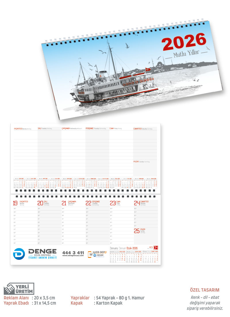 Beş Aylık Gemici Takvim (Üç Parça Spiralli)