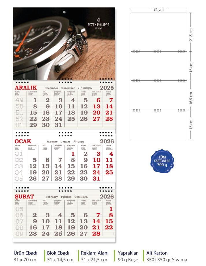 Büyük Gemici Takvim Extra (Üç Parça Spiralli)