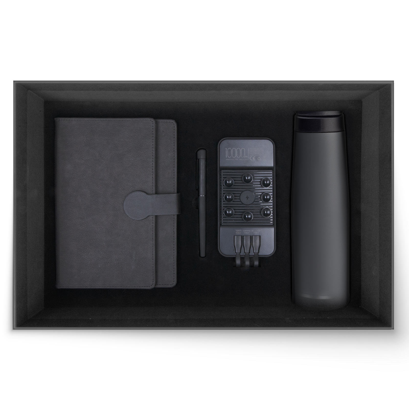 *550 ml Termos *15 x 21 cm Defter *Roller Kalem *10.000 mAh Ledli Powerbank *Baskı: Lazer, Serigrafi, Sıcak, UV